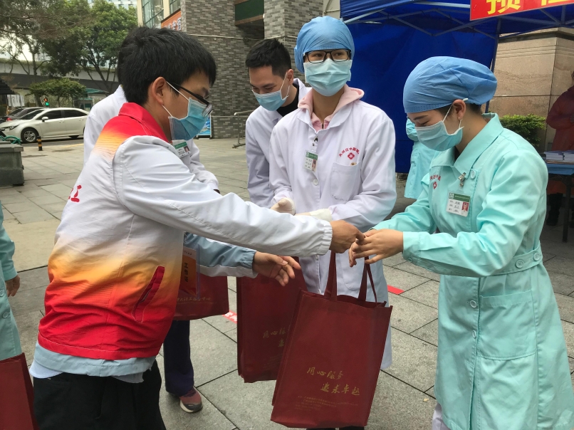 此外,为积极落实《2020年学雷锋月广州社区志愿服务“七大战疫”系列行动方案》,减轻一线医务人员在前线工作的后顾之忧。在猎德街道党工委、办事处的指导下,猎德街社工服务站积极发动党员社工、团员社工和社区党员志愿者,为猎德街社区卫生服务中心41名一线医务人员及其家属送去了防疫爱心礼包。