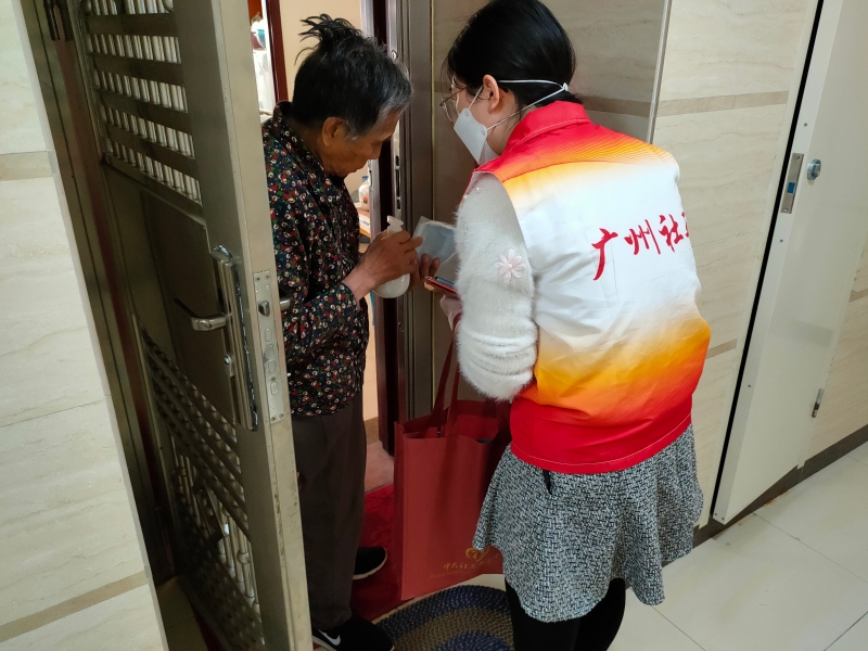 80多岁的独居长者何婆婆是社工重点关注的人员之一,在社工“每日一问候”过程中,社工们了解到何婆婆担心缺乏口罩和防护物资,一直无法外出购买物资。社工及时联系猎德街道民政科和社区居委会为她送上了急需的口罩和大米。何婆婆开心地说:“你哋好贴心,有你哋,我咩都唔惊!”