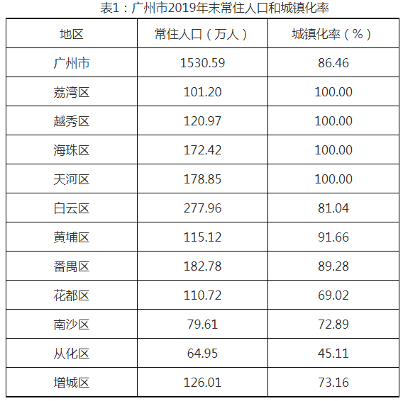 在城镇化率方面,广州常住人口总体水平为86.46%,其中,荔湾区、越秀区、海珠区和天河区城镇化率为100%,从化最低为45.11%。
