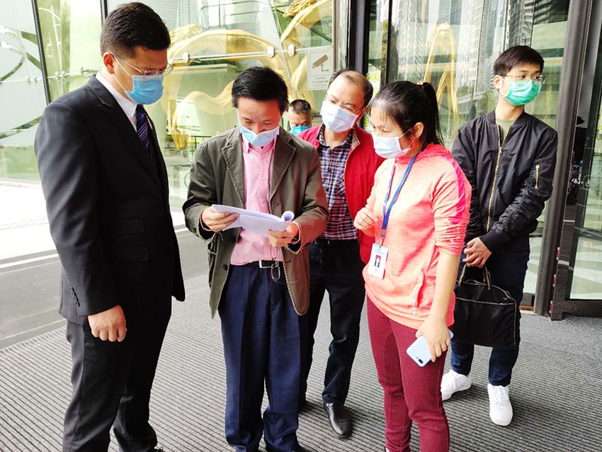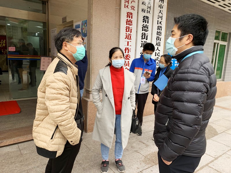江淑仪(左二)联合市疾控中心在猎德街道办事处指导新冠肺炎疫情防控工作