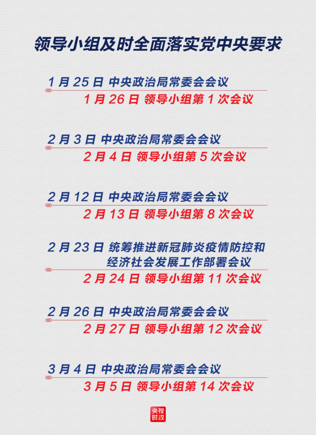 中央应对疫情工作领导小组是在中央政治局常委会领导下开展工作。2月3日、2月12日、2月26日召开的中央政治局常委会会议都听取了领导小组所作的汇报。