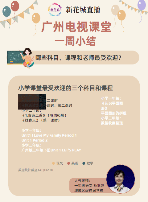 作为广州线上教育的托底课程,“广州电视课堂”11个年级全部上线已有一周。新花城提供了小学一年级至高二全部课程的直播和回放。这些集全市名师之力录制的课程,质量之高出乎许多学生和家长的意料。在新花城客户端,开播仅2日,直播专题点击量就达到了1759万。其中,小学生的人数最多,收看热情最高,两天内小学课程的总点击量就有近1000万。新花城的流畅性、稳定性和高清画质受到了各方赞扬。
