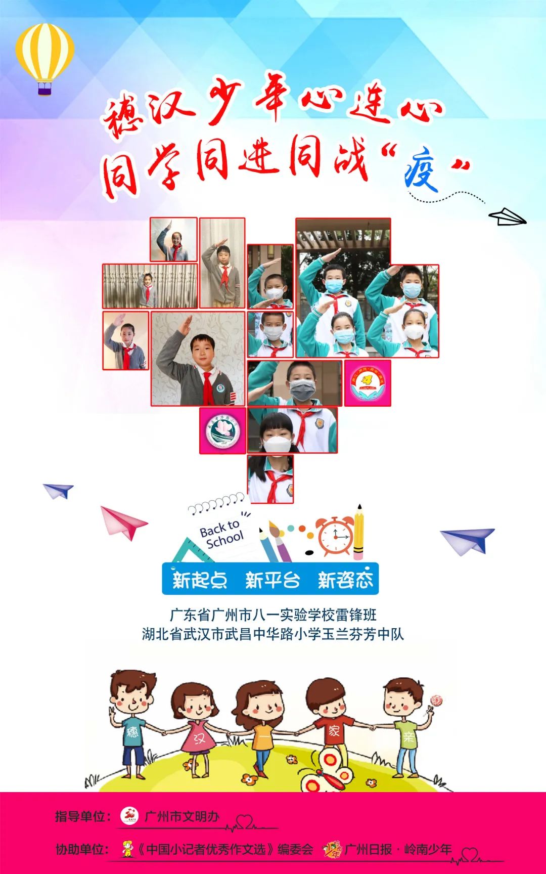 新冠肺炎疫情发生以来,武汉作为疫情最严重的城市,抗疫进展牵动人心。为了武汉、广州两地学校加强沟通和增进友谊,携手抗疫,在广州市文明办指导下,《广州日报·岭南少年》编委会携手《中国小记者优秀作文选》编委会策划了一系列“穗汉少年心连心”线上交流活动。