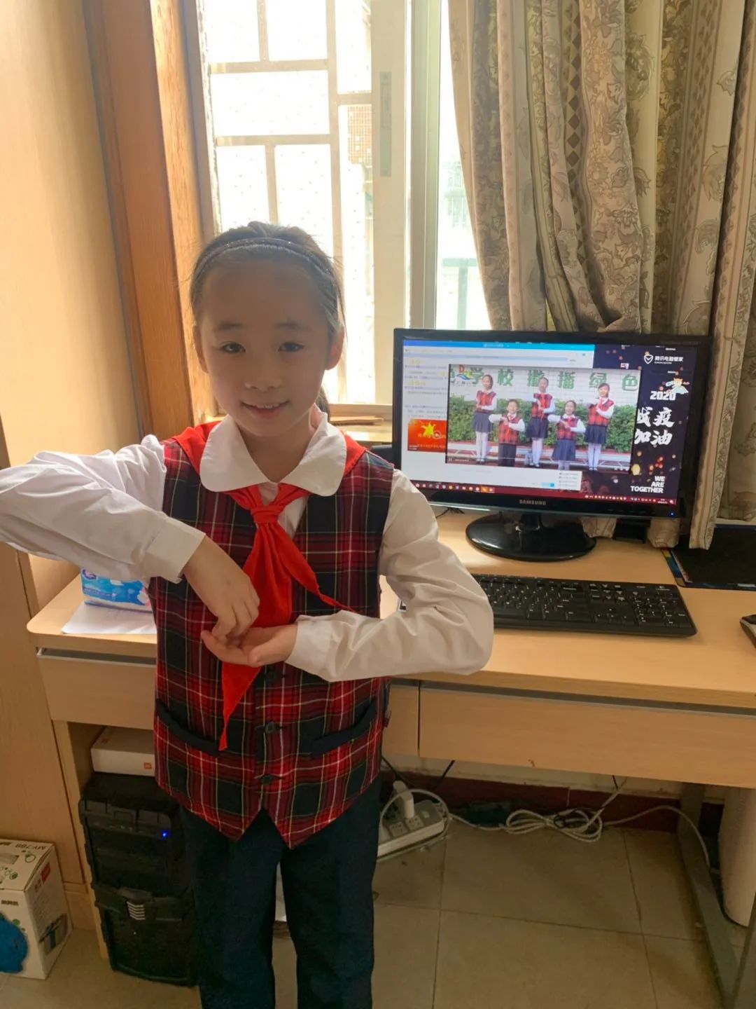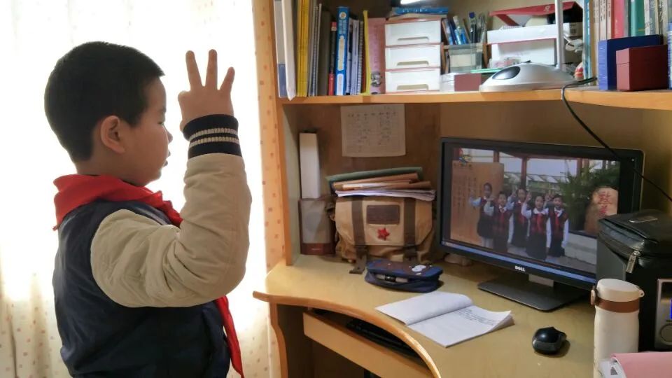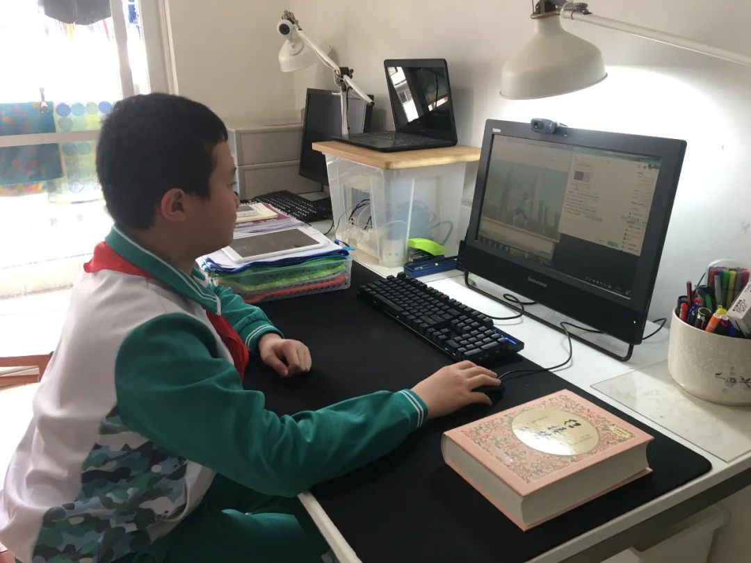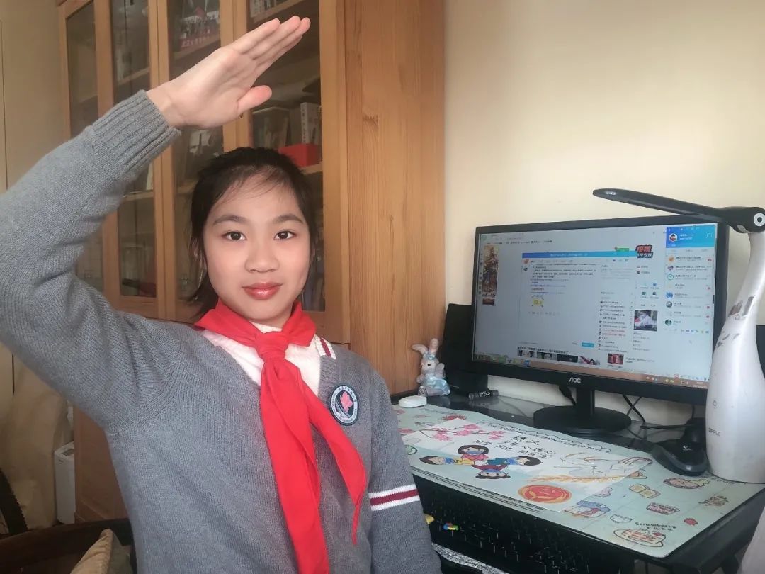 广州市八一实验学校同学们在家参加线上活动。