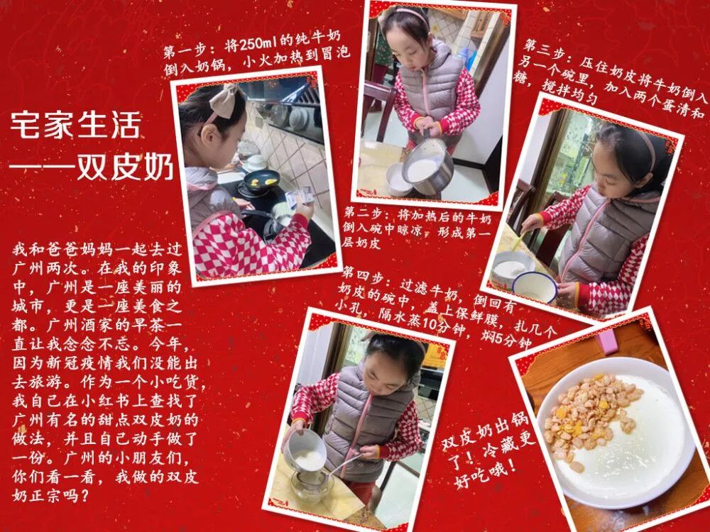 受到疫情的影响,现在同学们都只能待在家中开展学习活动。但是在家里学习的效果怎么样呢?活动中,在主持人的引导下,大家纷纷说出自己宅家期间,除了线上上网课外的各种新增技能,还分享了图片。