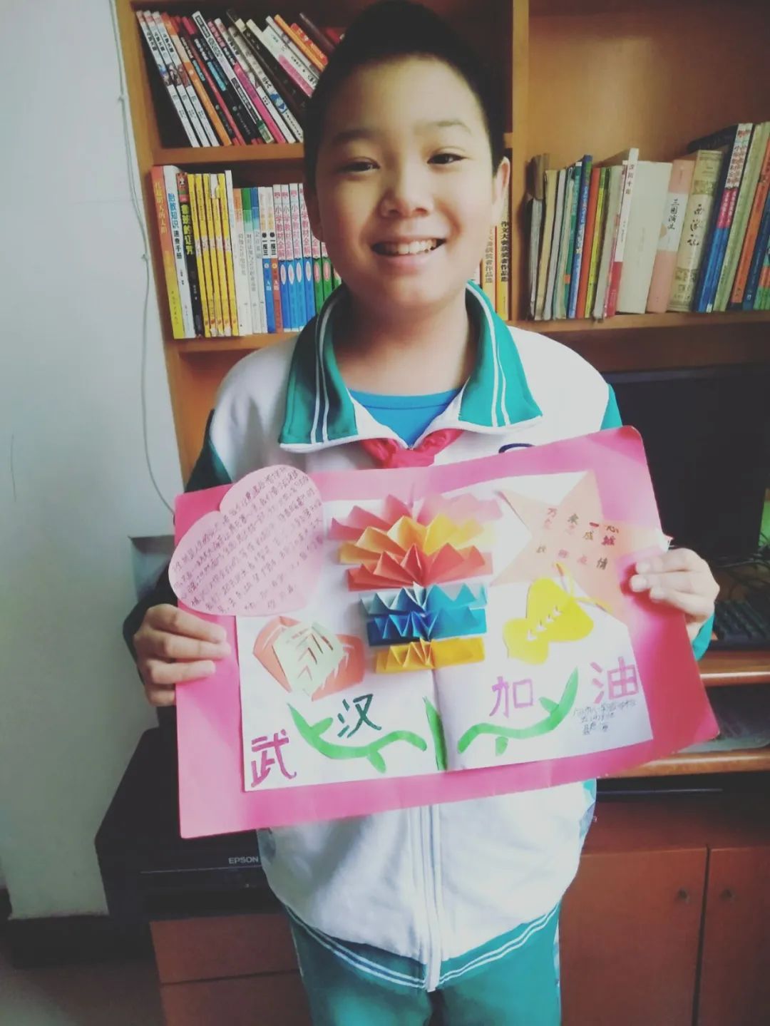 在这场战役中,我们看到了爸爸妈妈无私奉献,坚强不屈的身影,在他们身上读懂了“担当”二字。