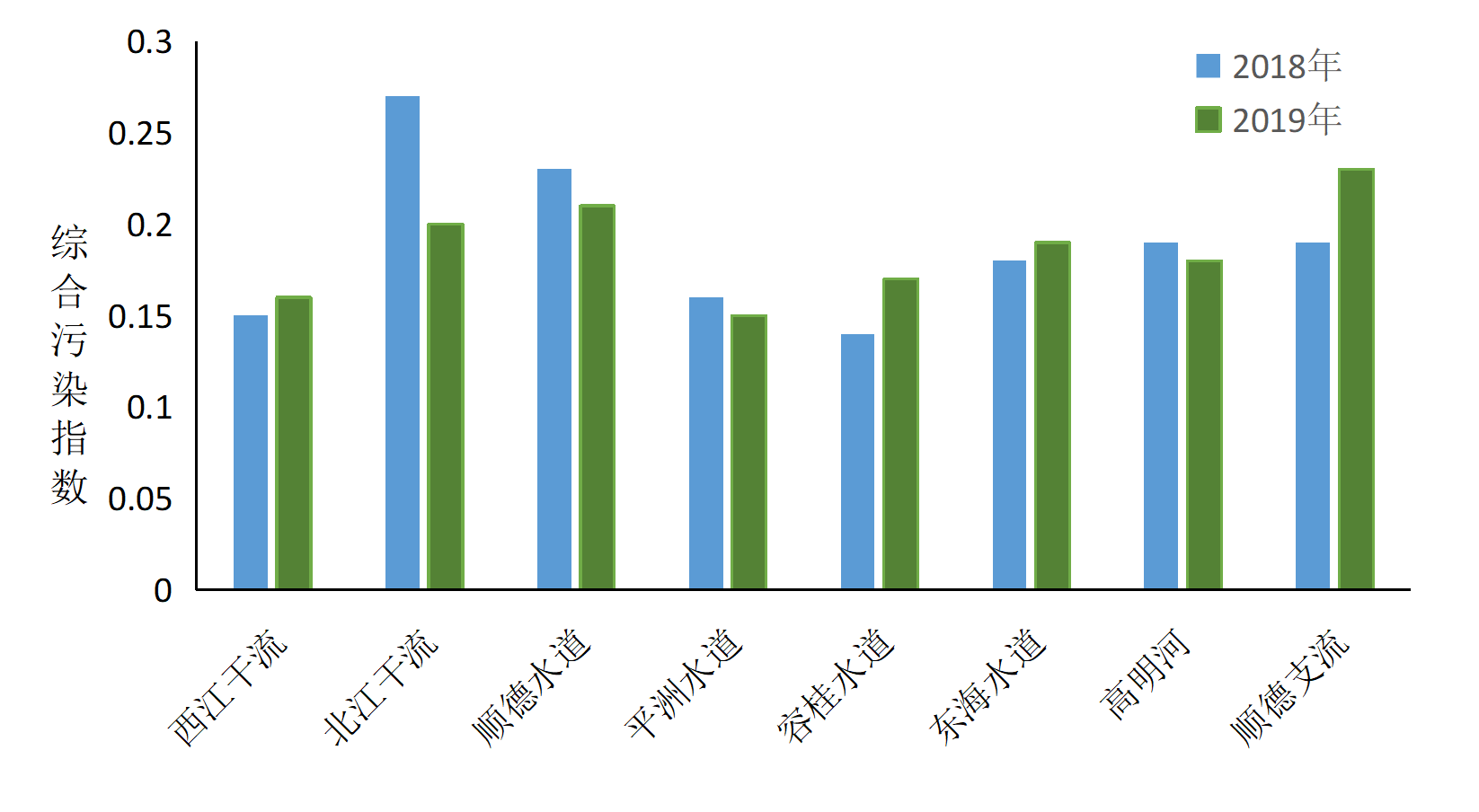 2019年佛山市主要河流水质综合污染指数