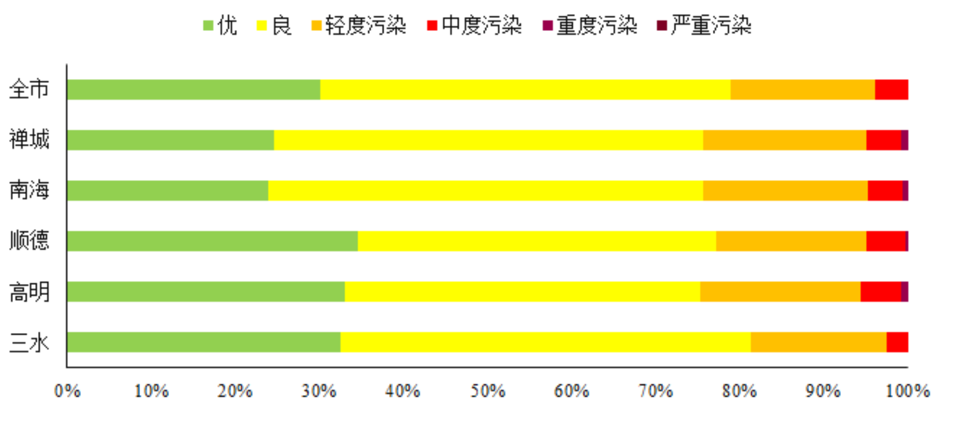 高明三水良好,禅城南海顺德合格