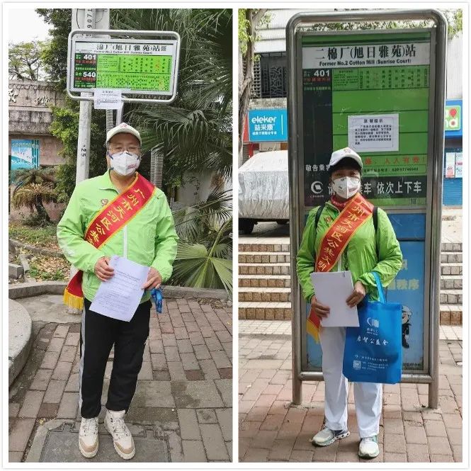 今年春节期间,天河各街的社区党员、在职党员、热心居民等纷纷化身公共文明引导志愿者,在各公交站点宣传疫情防控知识、提醒市民出街戴上口罩、为候乘人员测量体温……成为春日里的一道独特风景。