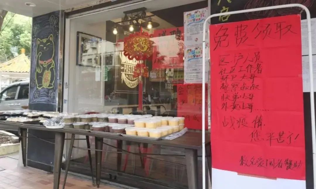 疫情期间,还有人用行动传递爱,感谢每一位守护天河的平凡普通人:员村新街一家烘焙店搭建起“爱心补给站”。