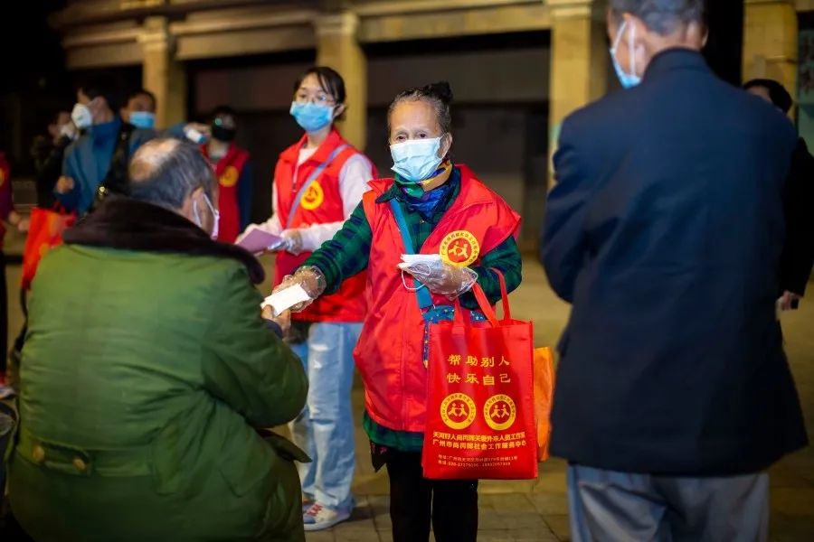 派口罩、量体温、做登记……一群天河志愿者每晚穿街过巷给露宿者派口罩,至今派发口罩超过2500个,惠及1000多人次。