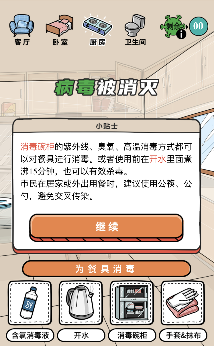 “消毒大作战”游戏共设置四个居家场景,包括客厅、卧室、厨房、卫生间。玩家通过点击查看的方式来寻找放置在各场景中的消毒用品以及隐藏了“病毒”的居家用品。找到被污染的居家用品后,可用相应的消毒用品进行消毒。每个用户每天消灭所有房间的60个病毒后,可以参与一次获赠宣传品的机会;每天多次参与游戏,只累加积分,次数不累加。在为期1个月的活动时间里,会进行3轮抽奖,每10天抽取一轮,每轮会抽20个幸运用户赠送防疫大礼包(包含广汽集团特别提供的广汽自制口罩20个,以及拼多多和三七互娱公司提供的2瓶消毒水、1个游戏周边礼品。)没填报注册资料的赶紧填报,已注册资料无需重复注册,第一轮幸运用户名单将在3月19日公布,您可以在广州日报官方微博、三七互娱官方微博、文明广州全媒体矩阵查看自己是否是那一个幸运用户。