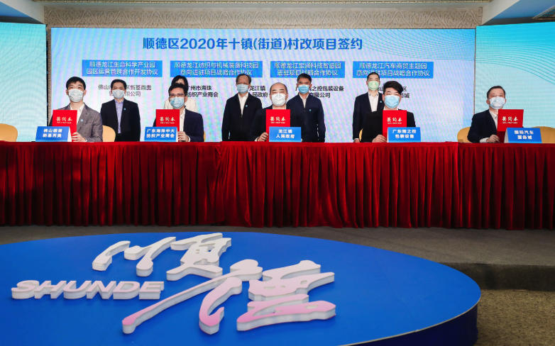 3月17日,佛山顺德举行2020年第一季度全区村级工业园升级改造及重点项目签约。顺德十镇街均有项目签约。记者了解到,此次村改及重点项目预计总投资额为1001.44亿元,其中村改重点项目投资额为502.74亿元,重大产业项目投资额为323亿元,重点基础设施投资额为175.7亿元。