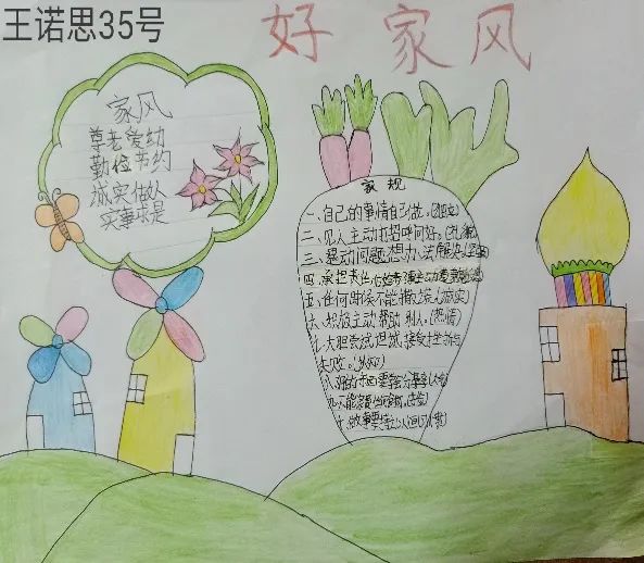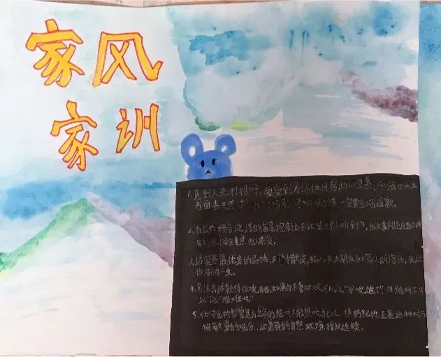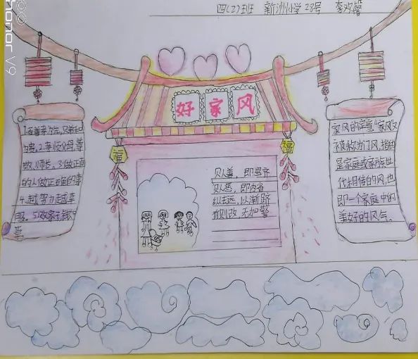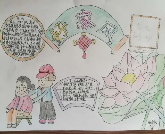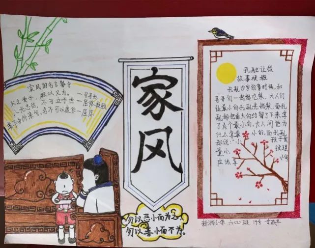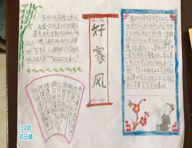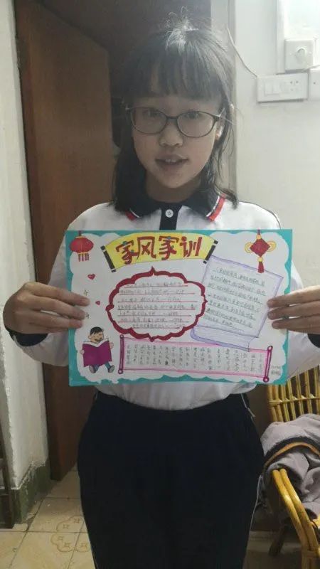 课后,同学们根据课堂感悟,积极践行“好家风”要求,创作了一系列的手抄报和小视频。