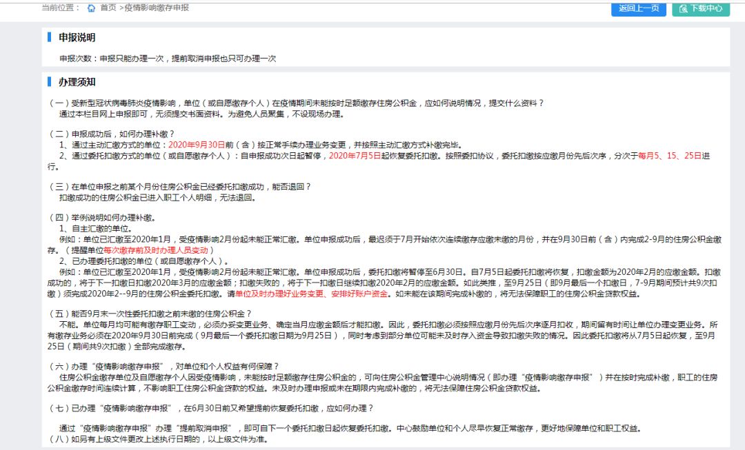 “疫情影响缴存申报”操作指引