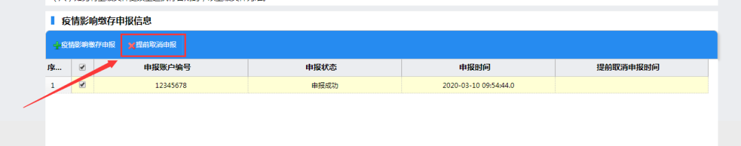 如单位因其他情况需提前取消该笔申报,也可通过界面“提前取消申报”按钮进行即时取消。需要注意的是申报只能办理一次,提前取消申报也只可办理一次。