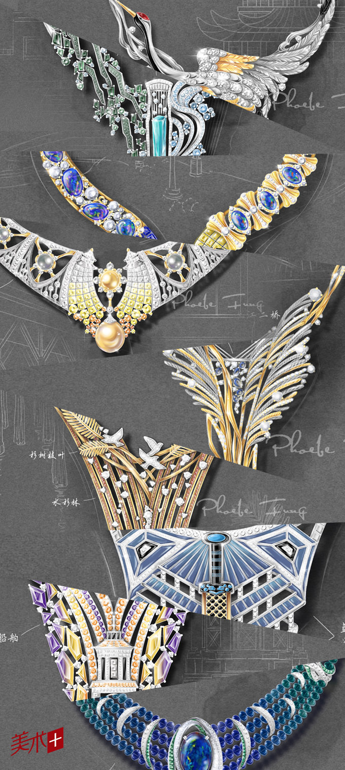 “美术+”:你这套首饰设计里有很多宝石的运用,让人爱不释手。有考虑把这套作品制作出来,或是量产出平民版的材质?