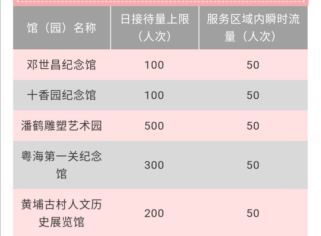 疫情期间博物馆(景区)将实行流量控制,达到日接待量上限,博物馆(景区)将停止服务,区域内瞬时流量达到上限,博物馆(景区)将暂时关闭入口,博物馆(景区)外游客须排队等候,并配合工作人员做好候场及疏散工作。