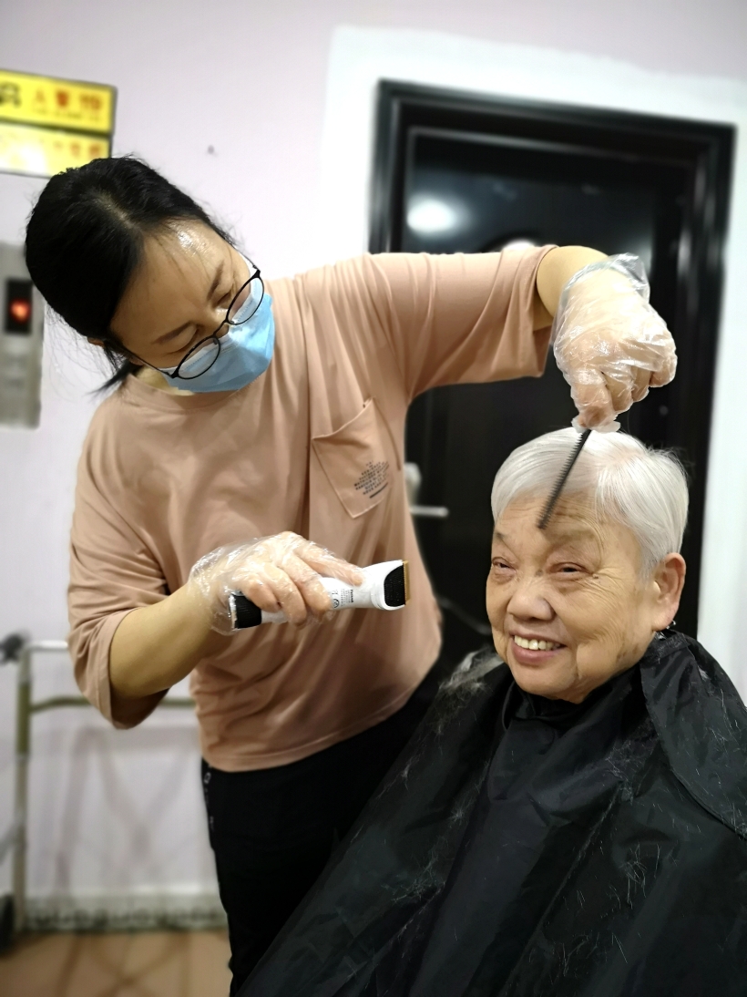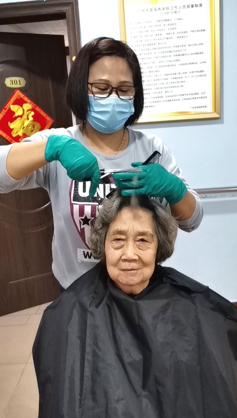 她告诉记者,给老人家剪头发其实很讲究。首先要征求他们的同意,有些不愿意剪头发的还要多“哄”一下,有些还对自己的发型有要求,要迁就老人家慢慢按照他们的要求去剪,“幸好剪出来他们也满意,然后我居然发现自己真的有点天赋哈哈”。沈院长对此颇为自豪。