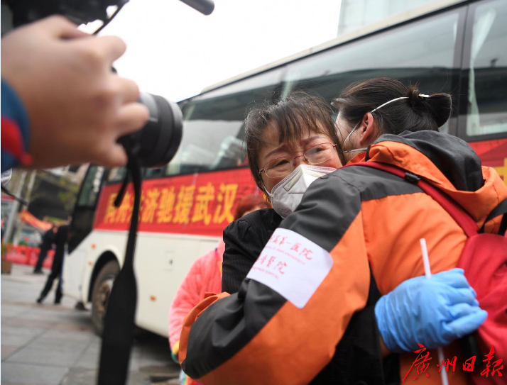 在接受中央电视台采访时说“我不能哭,护目镜会花”的广东第一批医疗队队员、中山三院护士朱海秀,离别武汉时哭了。“很不舍,留恋我战斗了50多天的地方。谢谢武汉和武汉人民!”朱海秀说,想念家里的味道,回广州后,要好好吃妈妈做的白斩鸡。