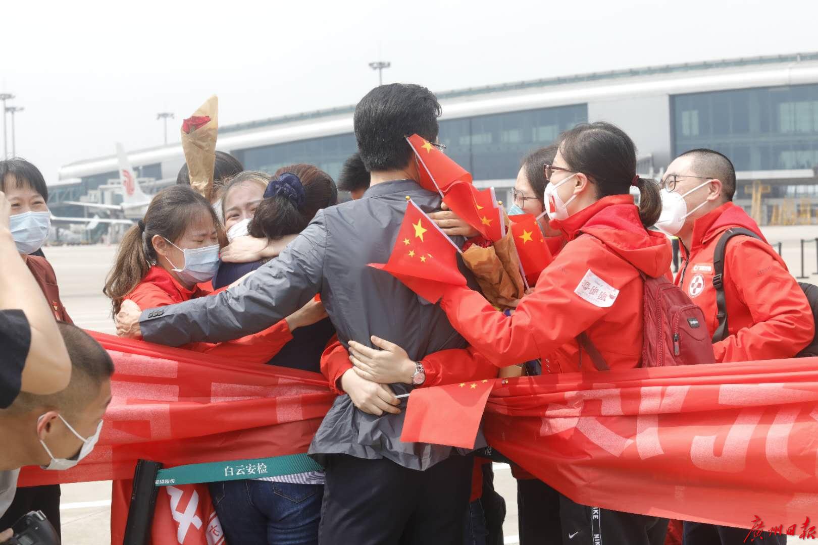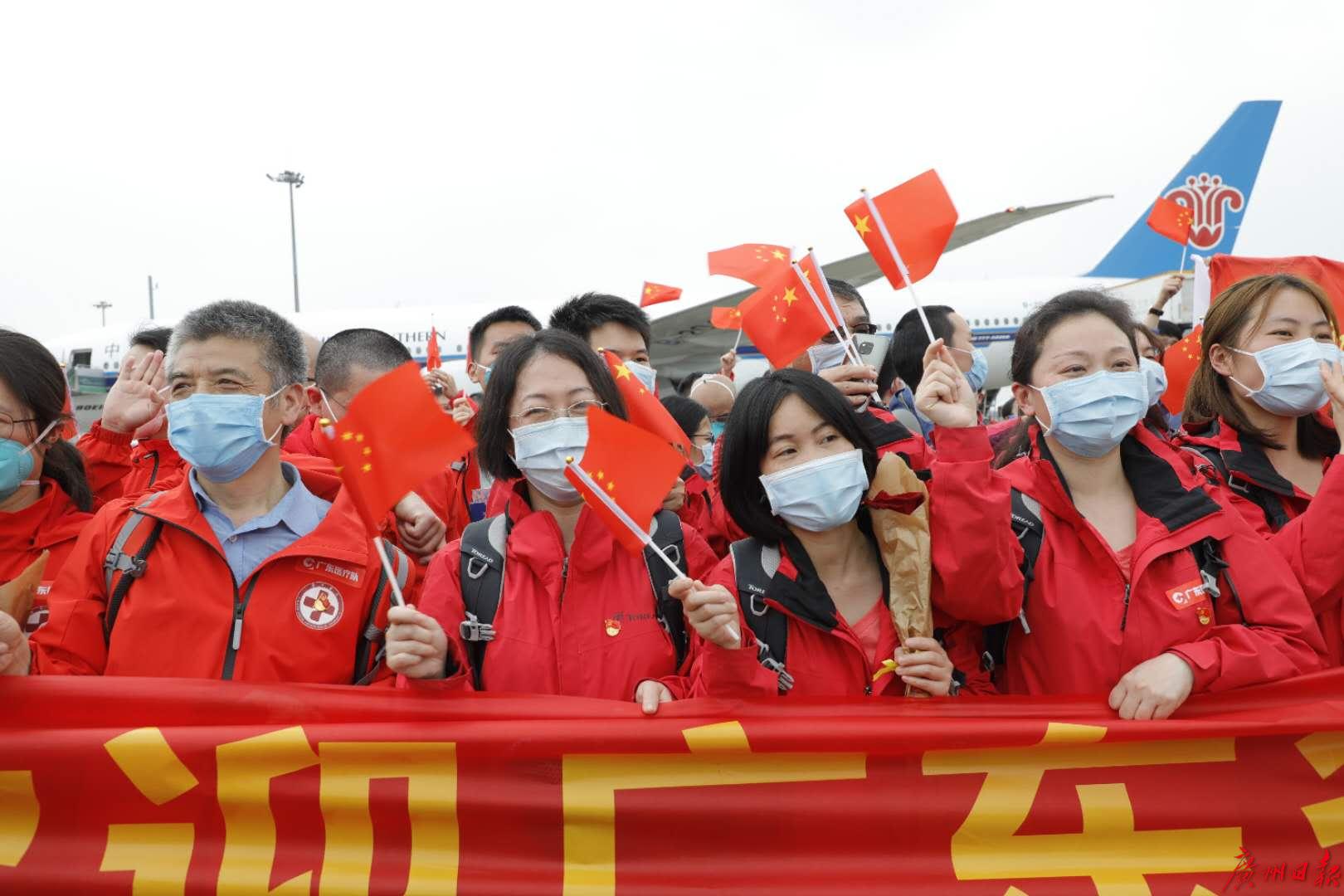 回家很开心,但离开奋战日久的地方,广东医疗队员们连声说“想哭了”。