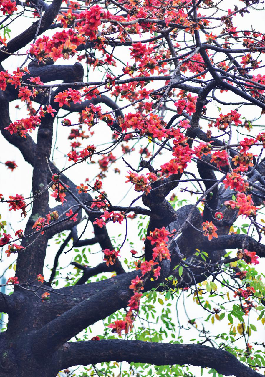 红棉,誉称英雄花,是南粤人们最喜欢的花。花都有一棵树龄156年的古红棉树,今年春天盛展芳华,成了一道亮丽的风景线。