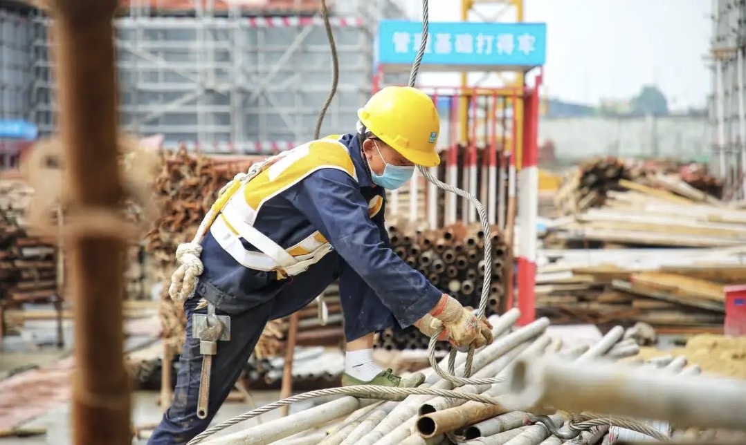 “请戴好口罩”,在白云高新区·产业创新园项目施工现场,工地安全员全程现场“喊麦”,提醒工人做好防疫安全。现场,项目7栋楼同时处于施工状态,秩序忙而不乱。