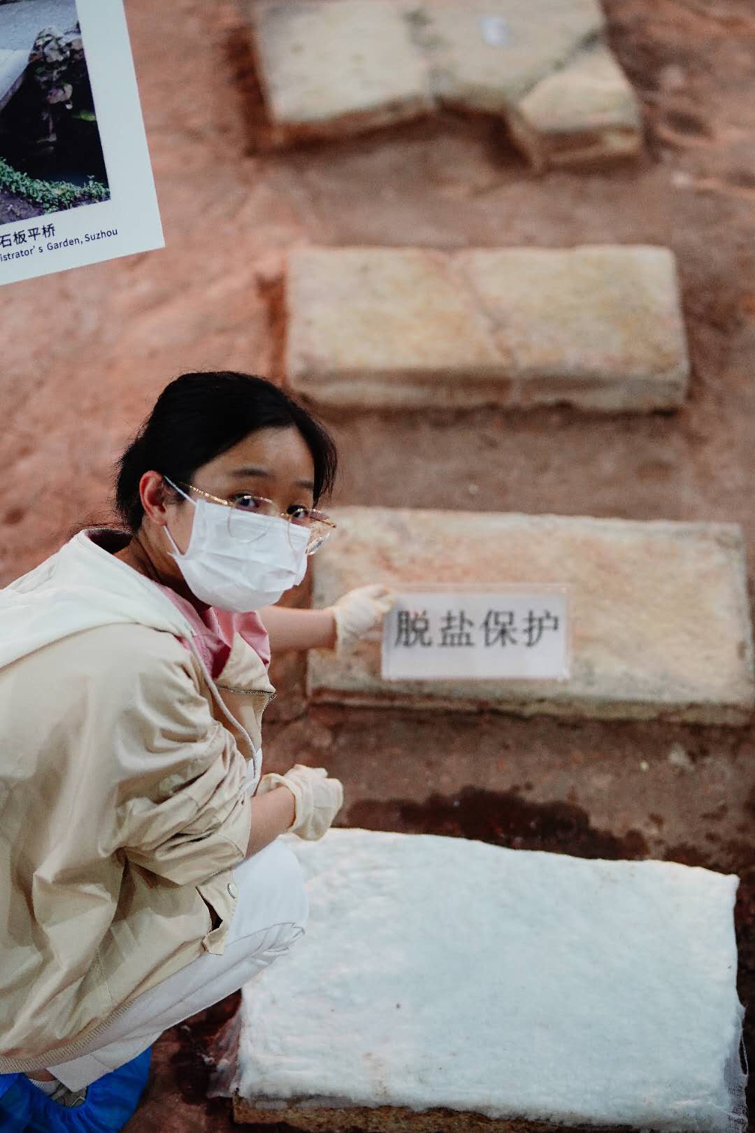 在日常的维护中,对结构稳定的土遗址区,专业人员采用吸尘器进行清洁;对砖、石或结构欠紧实的土遗址区用软毛刷清扫。木质文物需要严格控制湿度,每日根据含水率变化情况实施补水。春天百花开,霉菌、青苔也爱来,需要精心挑选对遗址安全无损害的杀菌防霉剂、杀藻剂等药物进行喷杀治疗。对具有侵蚀性的可溶性盐,采取敷纸浆的方式脱盐处理……