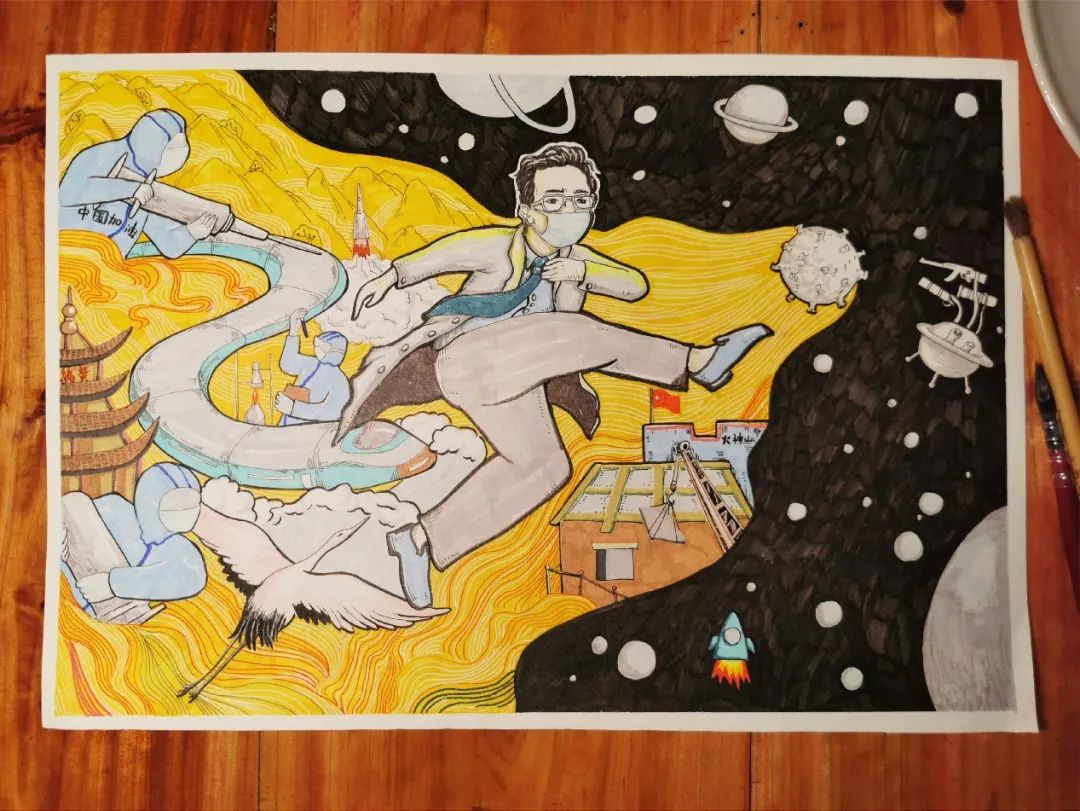 创作说明:疫情当前,钟南山院士与医务人员逆行奔向最危险的战场,他们是最美的逆行者,“踢”走病毒,我们终将回归彩色的生活。