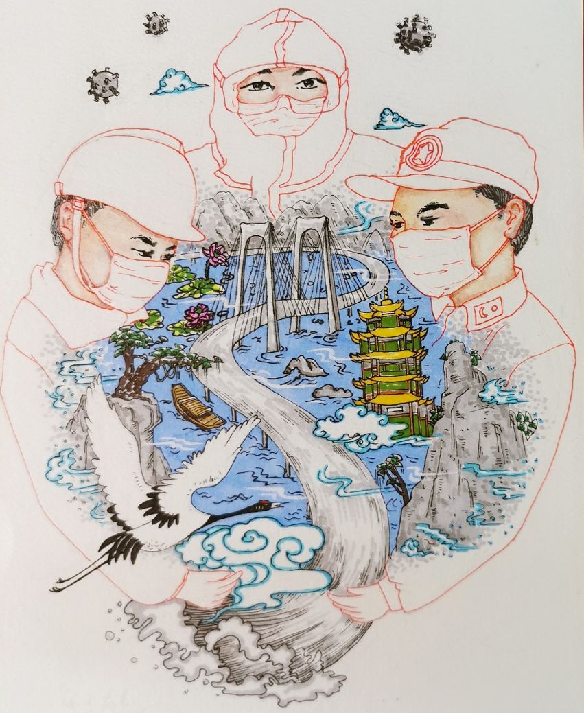 创作说明:在这场没有硝烟的战场中,他们担起了守护家园的职责,不计报酬,不论生死,成为了这个时代最美的“逆行者”,感恩他们,使得这座城、这个国有爱有温暖,亦有更美好的风景。