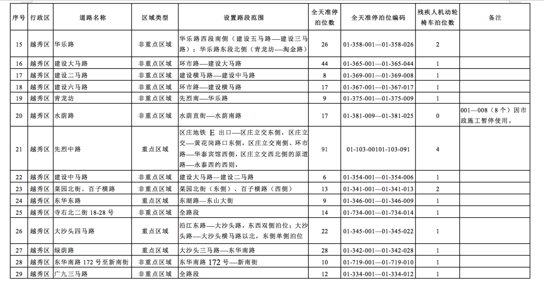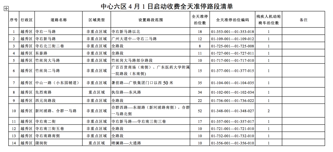 1、请广大市民关注广州市中心六区城市道路临时泊位使用费规则和《广州市停车场条例》等相关信息,重点区域单日连续停放最高限价工作日为328元,非工作日为263元,车辆长时间停放在临时泊位将产生高额的泊位使用费。