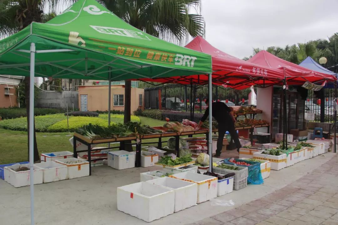 随即,广碧物业立即联合碧桂生鲜,在小区花园入口处引进蔬果便民服务,每天9点到19点搭棚摆摊,配置各类蔬菜水果,方便业主不出小区大门,在家门口就可以采购新鲜蔬果。