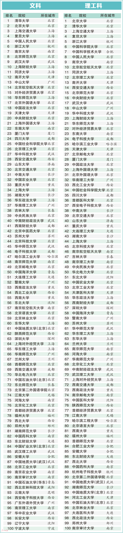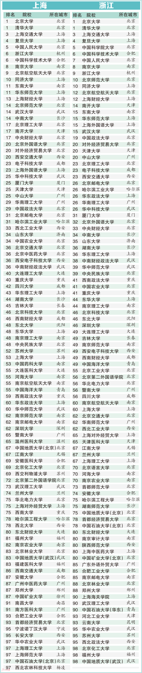 榜单显示,财经类、综合类、理工科类院校相对更受学生和家长的欢迎,特大城市(尤其北上广等一线城市)、沿海地区院校更受公众欢迎。