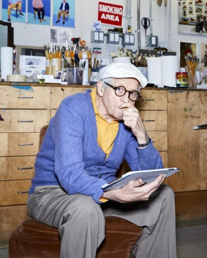 大卫·霍克尼,1937年生于英国布拉德福德。如今被称为“英国艺术教父”的他,早在11岁时就知道自己要当一名艺术家,26岁时已名声大噪。他与安迪·沃霍尔齐名,无疑是当今国际画坛最具影响力的大师之一,被称为“最著名的英国在世画家”。他创作出了近半个世纪以来最有识别度的生动图像。他的艺术生涯横跨了多个 领域,包括从拼贴摄影到歌剧舞台设计,从用传真机制作画作,到深入研究艺术史上的古典名家如何利用光学仪器进行创作。而他的作品也几乎包括所有可以使用到 的媒材,包括油画、水彩、摄影、印刷版画,并一直使用时代最前沿的科技参与创作,包括传真机、激光影印机、计算机,以及近年来使用的视频、iPhone手 机、iPad等设备。