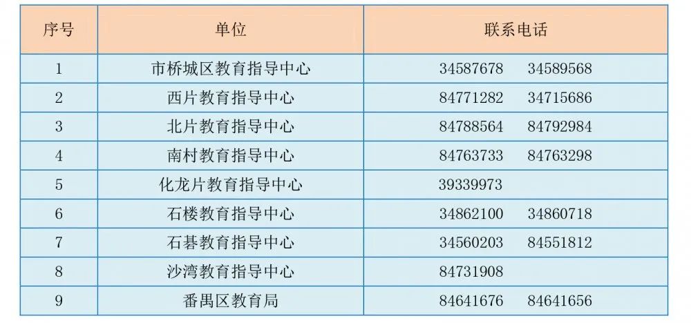 番禺区义务教育招生工作咨询电话
