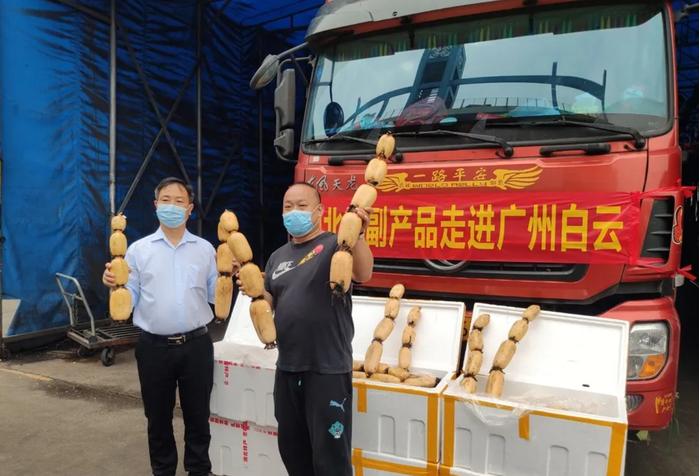 在江南市场里,商户们正在热火朝天地忙着卸下刚从湖北到的特色产品。“我们一刻也不敢耽搁,蔬菜讲求的是时效性。” 装着一车莲藕从孝感驱车14小时到达江南市场,货车司机陈女士表示,为了让莲藕能尽快到达销售市场,她与朋友两人轮班开车,携带好个人、车辆证件和农产品检验合格证明就从产地一路向南,沿途在服务区会有体温检测,车体消毒和人员信息登记。