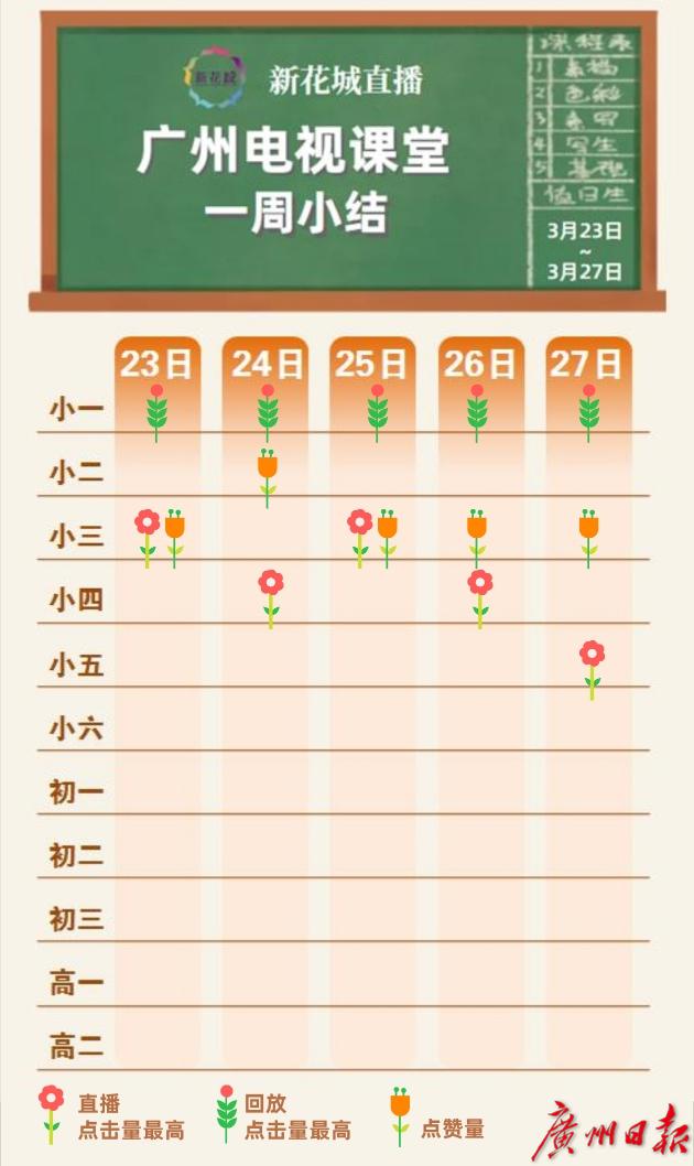 据统计,截至3月27日,广州电视课堂在新花城各端口总点击浏览量过亿。每日的最受欢迎课程中,除了学科类的课程外,艺术类和综合实践类课程也屡屡上榜,显示了家长和学生对综合能力及劳动技能培养的重视。据统计,“广州电视课堂”家长满意度超过了88.8%。