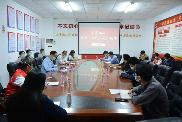3月25日上午,珠江街召开“不忘初心·我的火线入党故事”座谈会,邀请在新冠肺炎疫情防控第一线中火线发展的党员郭红英分享她的火线入党故事。街道党群工作分管领导,抗疫先锋典型代表,卫生、应急、社区等各条抗疫战线上的党员代表以及入党积极分子代表参加了座谈会。
