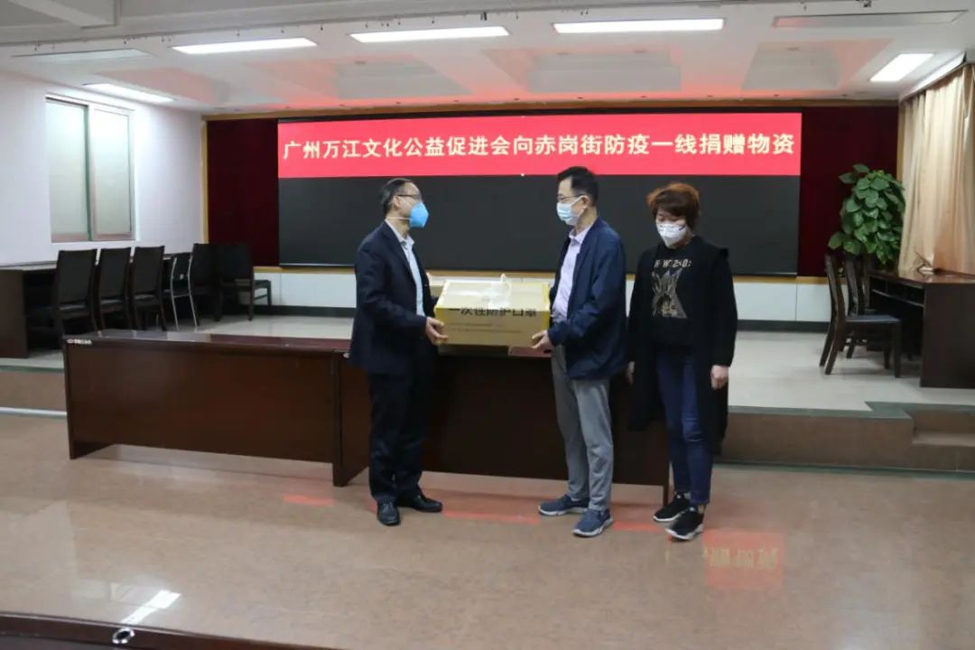 固生堂中医赤岗分院作为辖内党建联合促进会成员单位,向我街防疫一线捐赠了物资。除捐赠一批口罩外,还结合自身医馆特长,提供了一些中药调理剂给一线工作人员。广州万江文化公益促进会捐赠一次性外科口罩3000个,并表示:“你们在前线奋战,我们在背后支援。”在抗击疫情的关键时期,愿同社区一线工作者同心同德守卫健康。