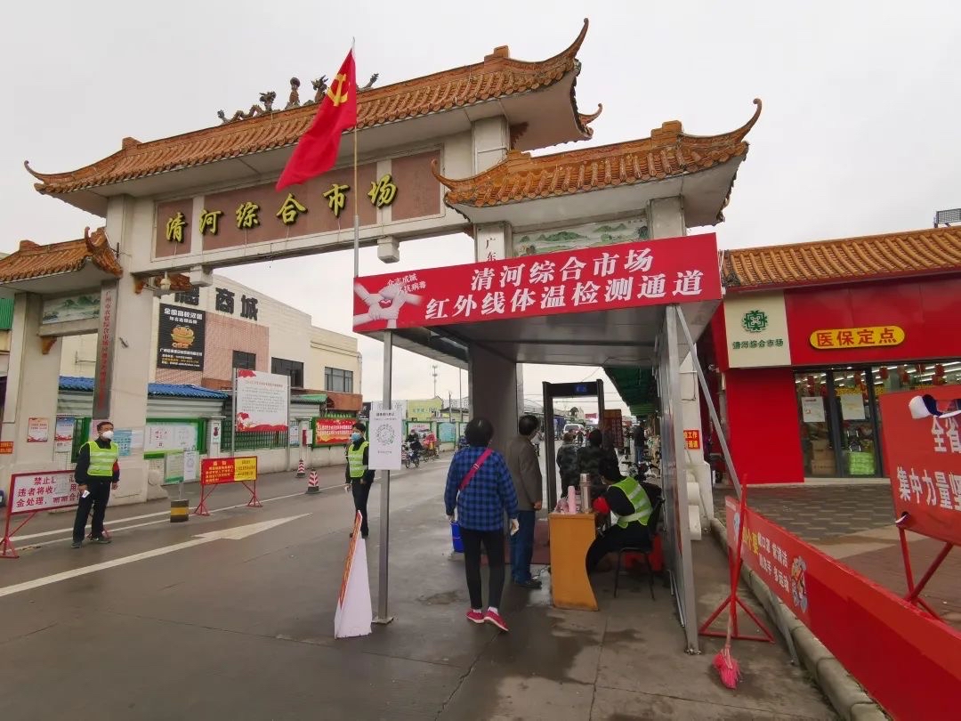 清河市场再次提醒广大商户遵守相关防疫工作的规定:预先填报“穗康码”,如有过期的请及时更新;确保最近14天内没有接触过新冠肺炎患者或疑似患者;进场前扫码填报“清河综合市场进场”码;必须戴口罩,人与人的距离留有足够的空间,并有序进行经营活动;配合工作人员进行相关防疫工作。