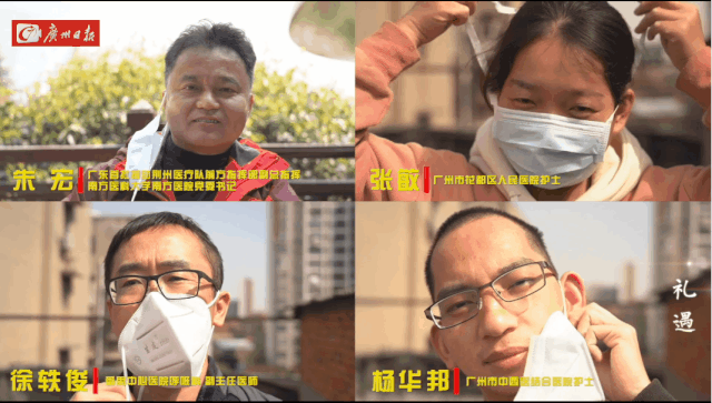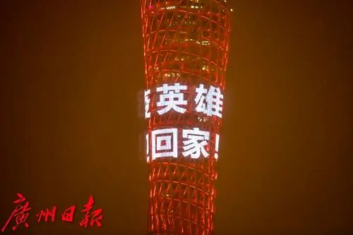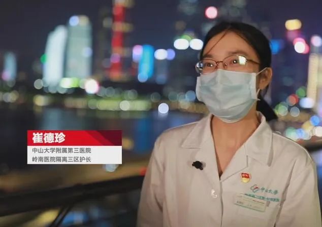 中山大学附属第三医院岭南医院隔离三区护长崔德珍:非常激动非常兴奋,然后也觉得非常亲切。这都是我们身边的战友在广州塔上面,觉得广州的城市非常温暖。
