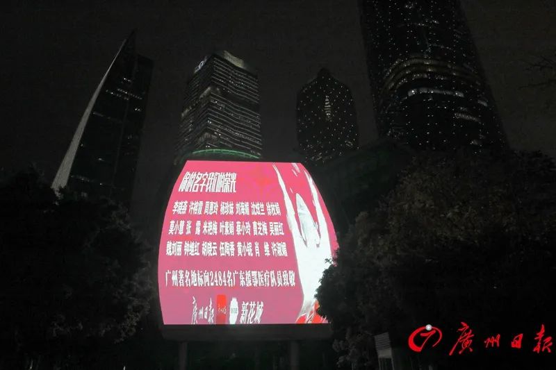 广东省第二人民医院呼吸与危重症医学科主任孙瑞琳:我从这个广州塔上看到了很多非常熟悉的名字,都是我同事的名字,我感觉非常的自豪。然后我似乎通过这些名字看到了他们在抗疫的最前线,不畏艰险努力工作的身影,我感觉也是非常的感动。