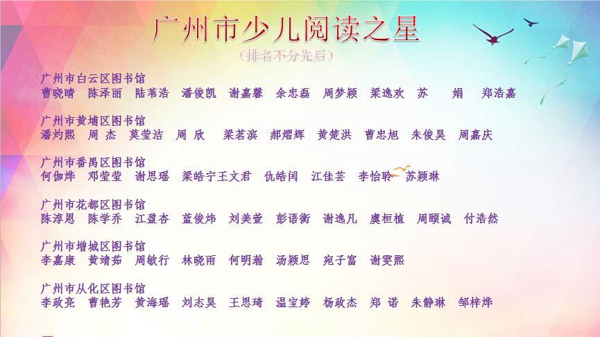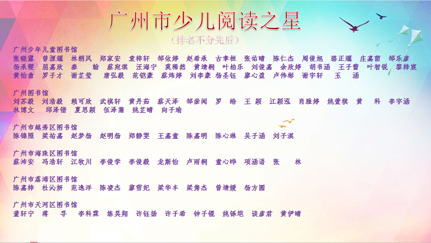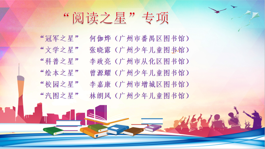 今年评出的156位“广州市少儿阅读之星”,年龄跨度从3岁至13岁,2019年度平均借阅363册。同时根据相应的阅读特点从中评选出“冠军之星”“文学之星”“科普之星”“绘本之星”“校园之星”和“汽图之星”等六个专项“星”。