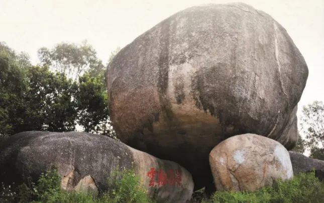 燕石翔云,增城明朝八景之一,位于荔湖街西瓜岭村燕石公山上。山顶平秃,有巨石耸立,石长18米、宽15米、高11米,底不着地,由数块大石托起,形似飞燕,故得名。清末西瓜岭村人马氏秀才在石上题大字“燕石翔云"至今保存。