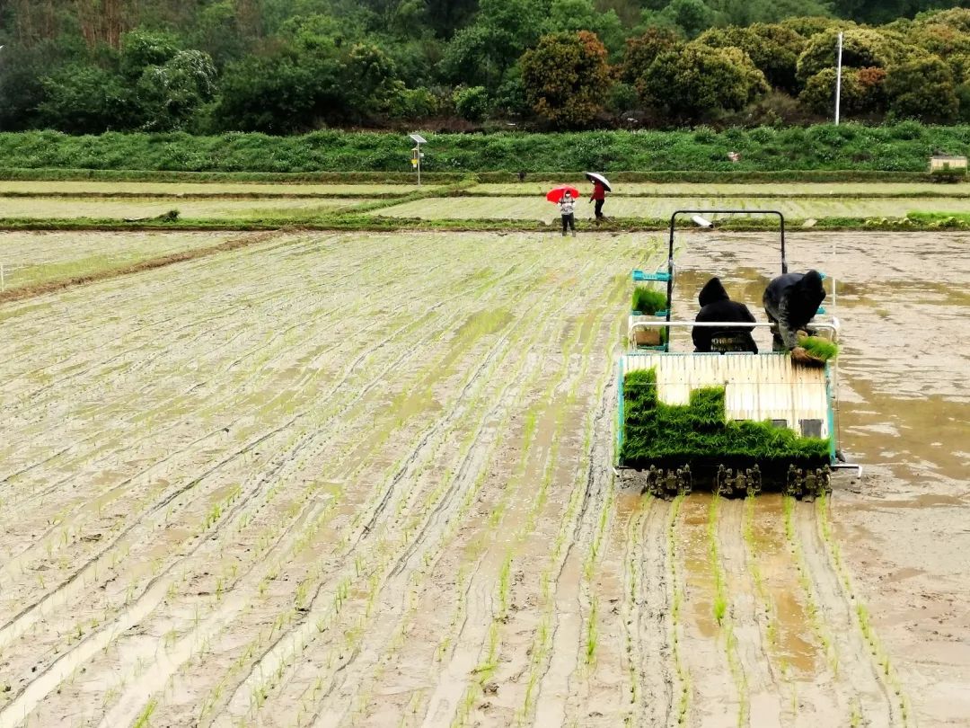 现场工作人员曾宏亮介绍,一台插秧机每小时大约能插4亩地,非常省时省力,过去几个人插一亩田要一天,使用插秧机就极大地提升了效率。按计划,每天使用2~3台插秧机,预计4天就能插完整片艾米农田。