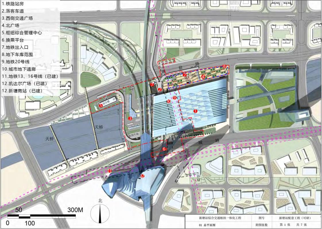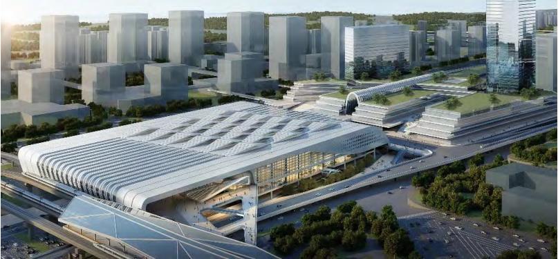 新塘站北广场效果图新增3条地铁线,28号线时速达160公里/小时