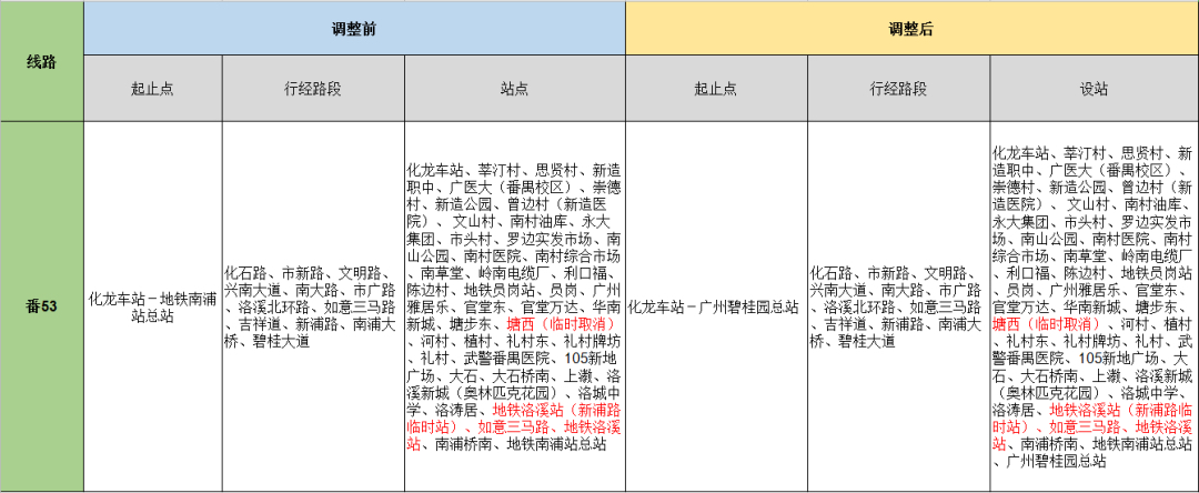 今日,广州日报全媒体记者获悉,番禺区交通运输局决定调整公共汽车番53线路由地铁南浦站总站延伸至广州碧桂园总站始发,线路由“化龙车站至地铁南浦站总站”调整为“化龙车站至广州碧桂园总站”,保持停靠地铁南浦站(中途站),线路其余停靠站点及行经路段保持不变。