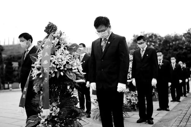 当日上午10时许,“传承红色基因,坚定理想信念——致敬·2020清明祭英烈仪式”在银河烈士陵园广场长明火炬前举办。现场所有人站立低头,面向长明火炬,为在此次疫情中的斗争烈士和逝世同胞肃穆默哀。