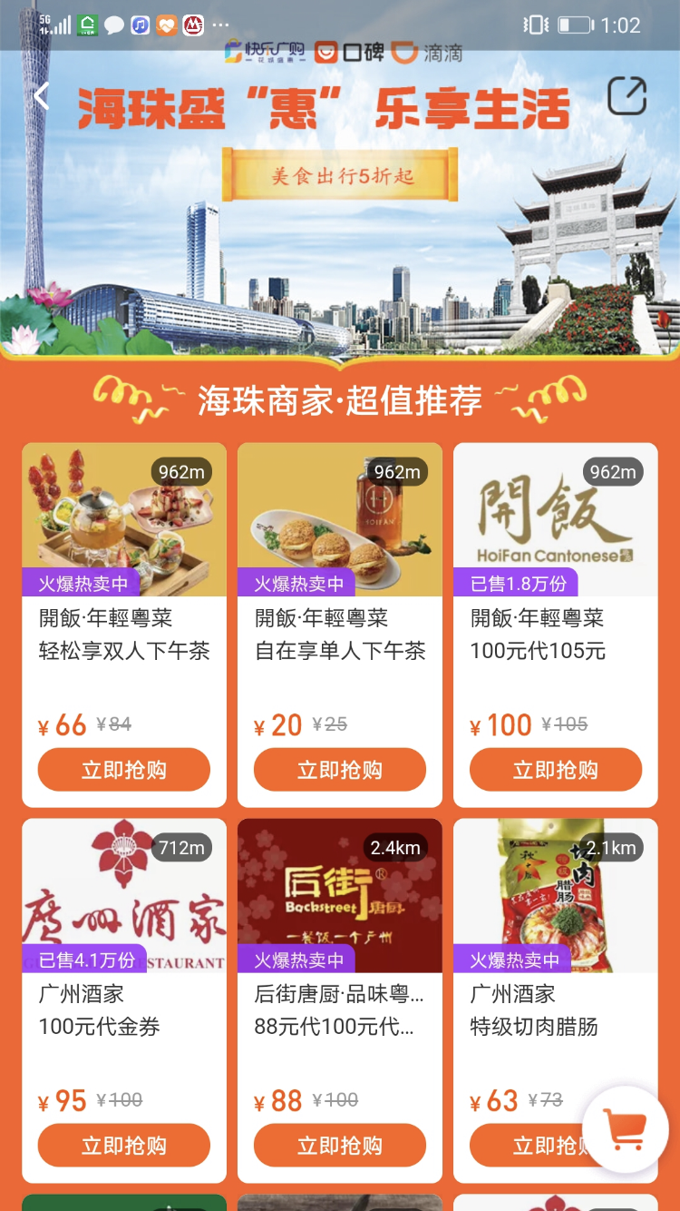 依托广州试验区琶洲核心片区在数字经济领域的先发优势,海珠区不断加快生活服务业数字化,大力发展网上菜场、网上超市、网上餐厅、网上书店等数字商贸新业态。此次活动,海珠区联合阿里巴巴、腾讯两大数字科技龙头,通过口碑平台、微信小程序分别搭建大促销活动平台,由平台定期推出和更新商家让利优惠信息,实现“线上推广+线下引流”的强强联合。首期活动在4月10日开启,口碑平台将推出海珠专场活动页面,为市民提供海珠区250多户商家、800个门店的专属优惠活动。4月中下旬,海珠区还将通过微信小程序派发消费券,覆盖百货、超市、文旅、住宿、餐饮等多个行业。区内各大商家将通过各类促销费活动让利近亿元。