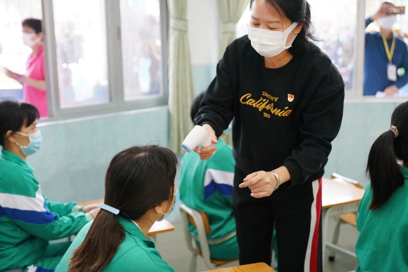 “学生”在课室进行第三次测温。